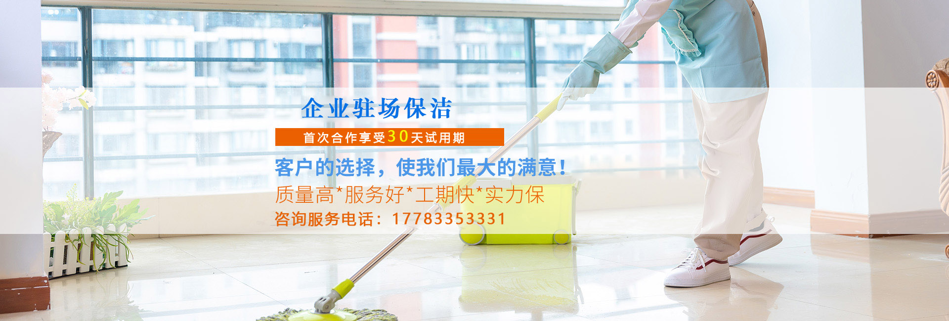 開荒保潔、玻璃清洗、日常保潔、別墅保潔、展會保潔、外墻清洗、地板打蠟為你提供優質的施工方案和解決方法,保你無后顧之憂.選擇了我們,就是選擇了清洗保潔管家,省去了你多方尋找的時間!